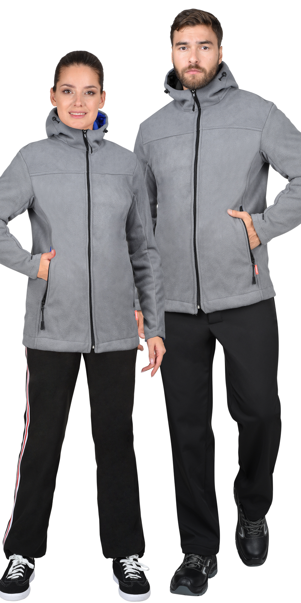 Материал основой: «Флис» двусторонний с мембраной, плотность 400 г/м², состав 100% ПЭ, цвет: серый с черным.