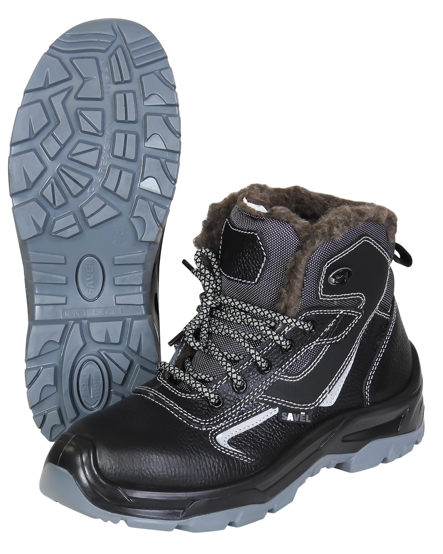 Подкладка и вкладная стелька в ботинках серии «SAVЁL-ДЖЕТ» утеплённые, из шерстина. Имеются световозвращающие элементы для привлечения внимания и исключения несчастных случаев на производстве в темное время суток.