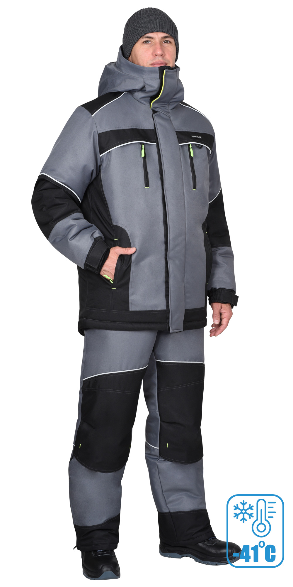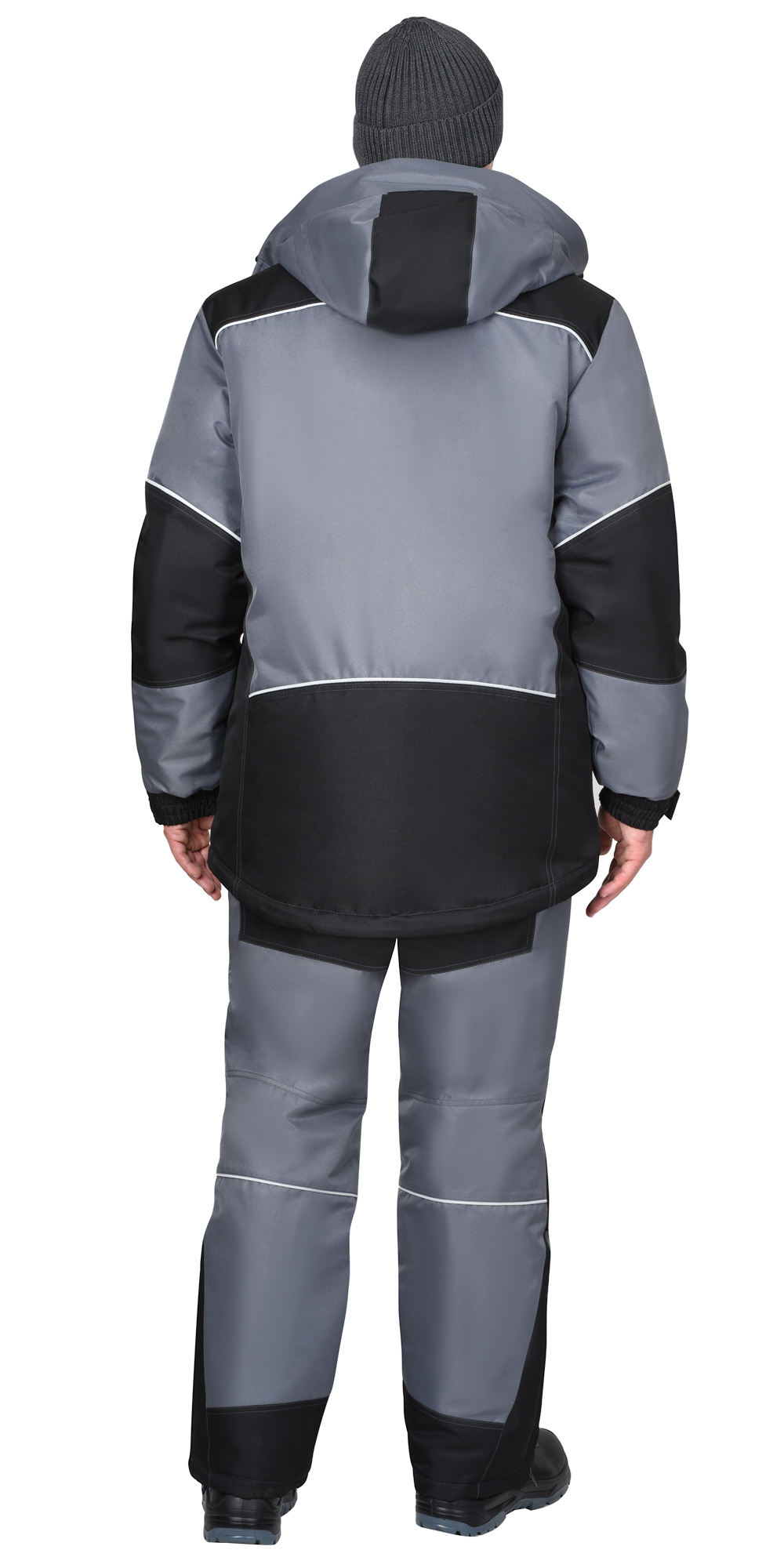 Костюм зимний состоит из куртки и брюк. В костюме предусмотрен СВ-кант для обеспечения сигнальной видимости.