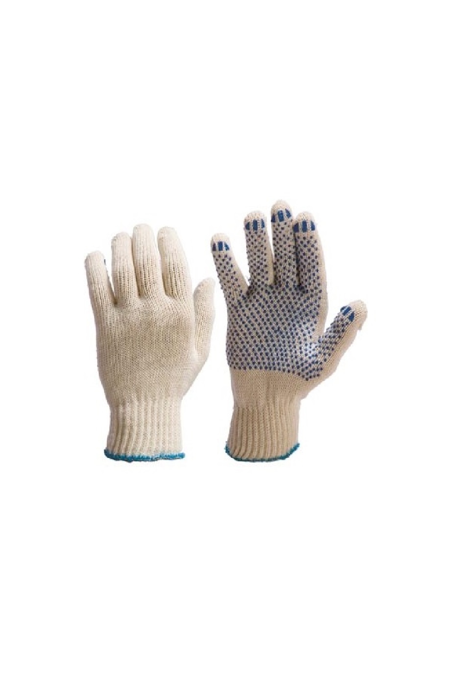 изготовлены из натурального хлопка, а точечки на контактной поверхности из специального полимерного материала. Покрытие из ПВХ позволяет крепко удерживать в руках скользящие материалы, структура покрытия не позволяет предмету вылететь или выскользнуть из руки. . Эти перчатки изготавливаются из 100% натуральной хлопковой нити, что позволяет полностью исключить аллергические реакции на искусственные материалы у рабочих, страдающих аллергией.