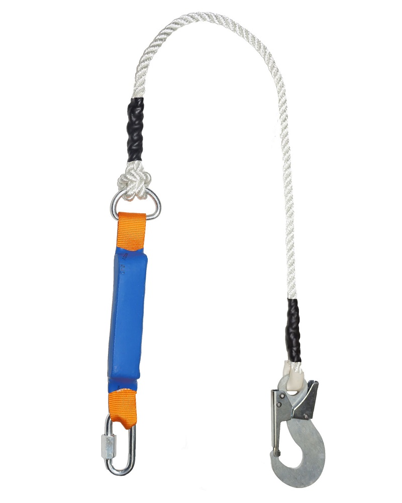 Страховочный строп из полиамидного каната с амортизатором, монтажным и соединительным карабином.